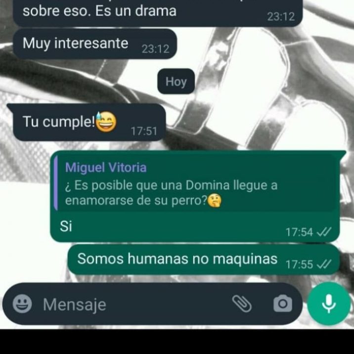 Aquí lo importante no es si podría ocurrir, sino que somos humanas, personas, y pueden darse muchos más supuestos. Y que sentimos. Algunas tenemos pareja, las hemos tenido o tenemos una vida más allá del BDSM. Muchas veces con éste presente, más o menos, en ella, pero no por ser Dommes dejamos de ser mujeres con necesidades, deseos, anhelos y nuestras propias experiencias.